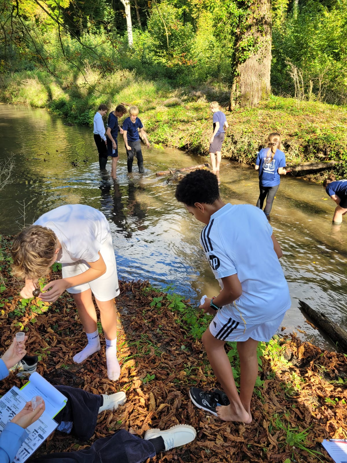 Analyse de la qualité de l’eau de la Molignée : prélèvement des êtres vivants dans la rivière et identification de ces derniers à l’aide de clés de détermination.