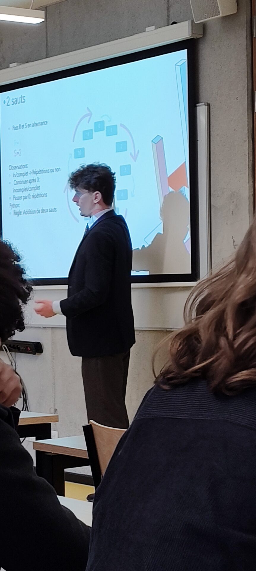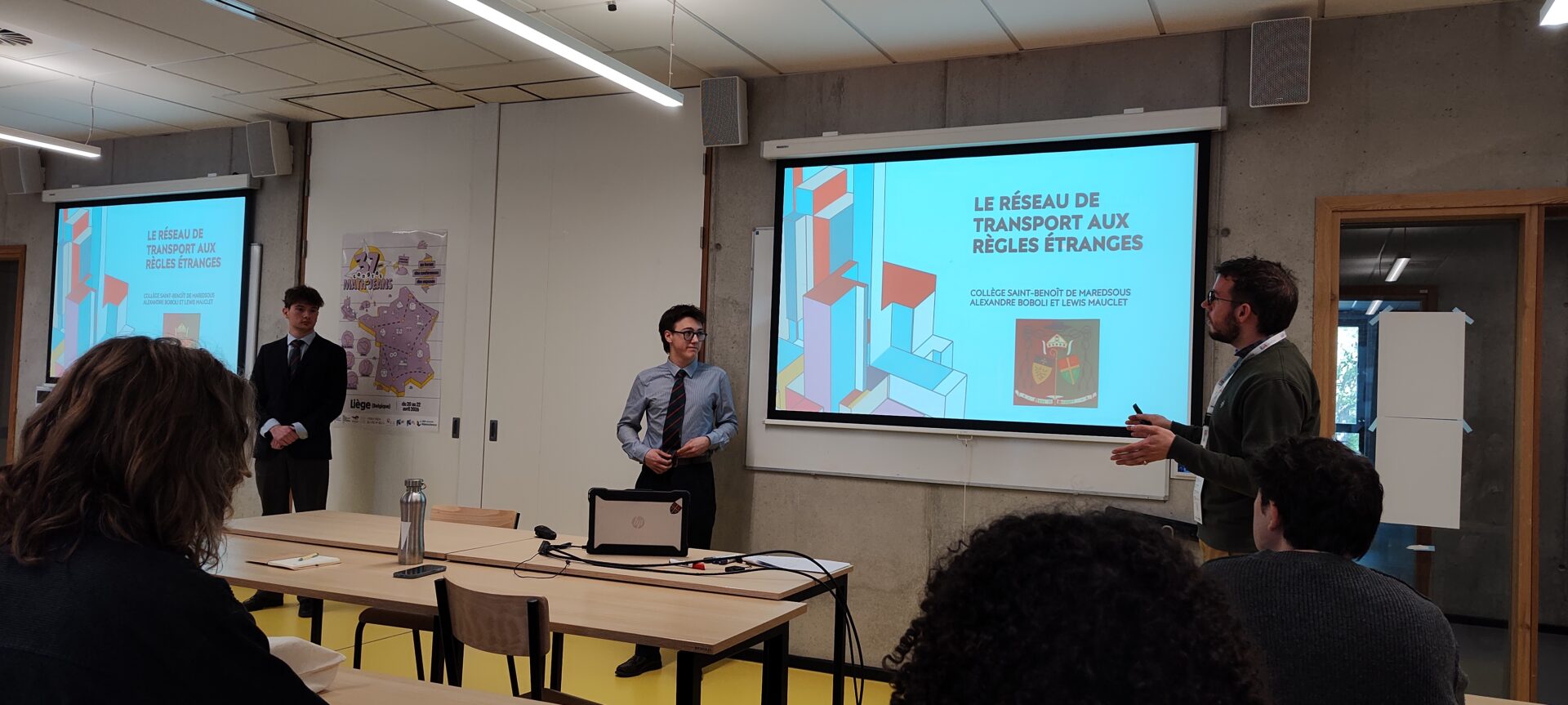 Pour clore nos présentations, Alexandre Boboli et Lewis Mauclet ont présenté leur projet Le réseau de transport aux règles étranges : quand les maths réinventent le métro. Une exploration passionnante des réseaux et des algorithmes, montrant comment les mathématiques peuvent optimiser et repenser nos systèmes de transport.