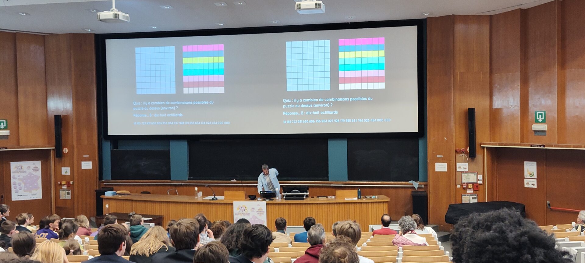Pauline, Célestin et Éléonore ont relevé un défi littéraire et mathématique avec Trois questions, dix mille livres : le défi mathématique de Madame Biblio. Une plongée dans l’univers de l’analyse combinatoire et de la logique, inspirée par l’immense diversité des livres.