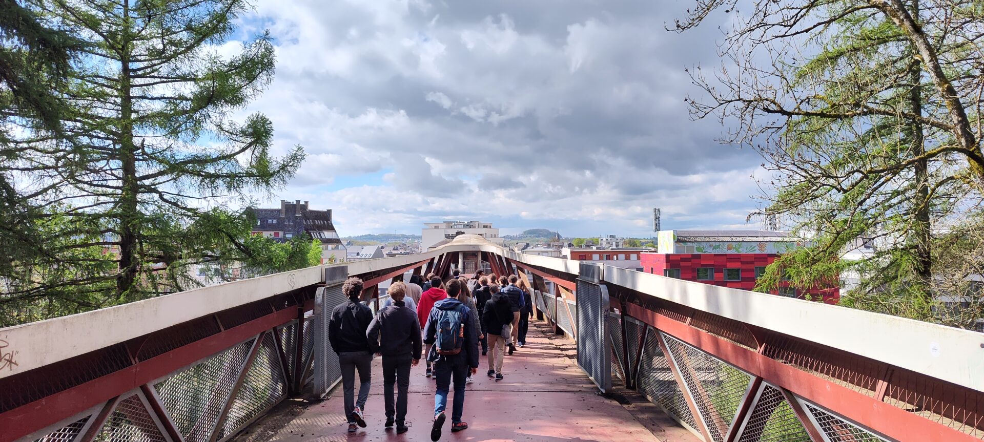 La deuxième journée du Congrès Math.en.Jeans nous a permis de visiter la ville d’Esch-sur-Alzette, un lieu chargé d’histoire industrielle et de développement culturel moderne. Nos élèves ont exploré des sites emblématiques tels que le Belval, où d’anciennes structures industrielles côtoient des bâtiments universitaires et des centres de recherche.