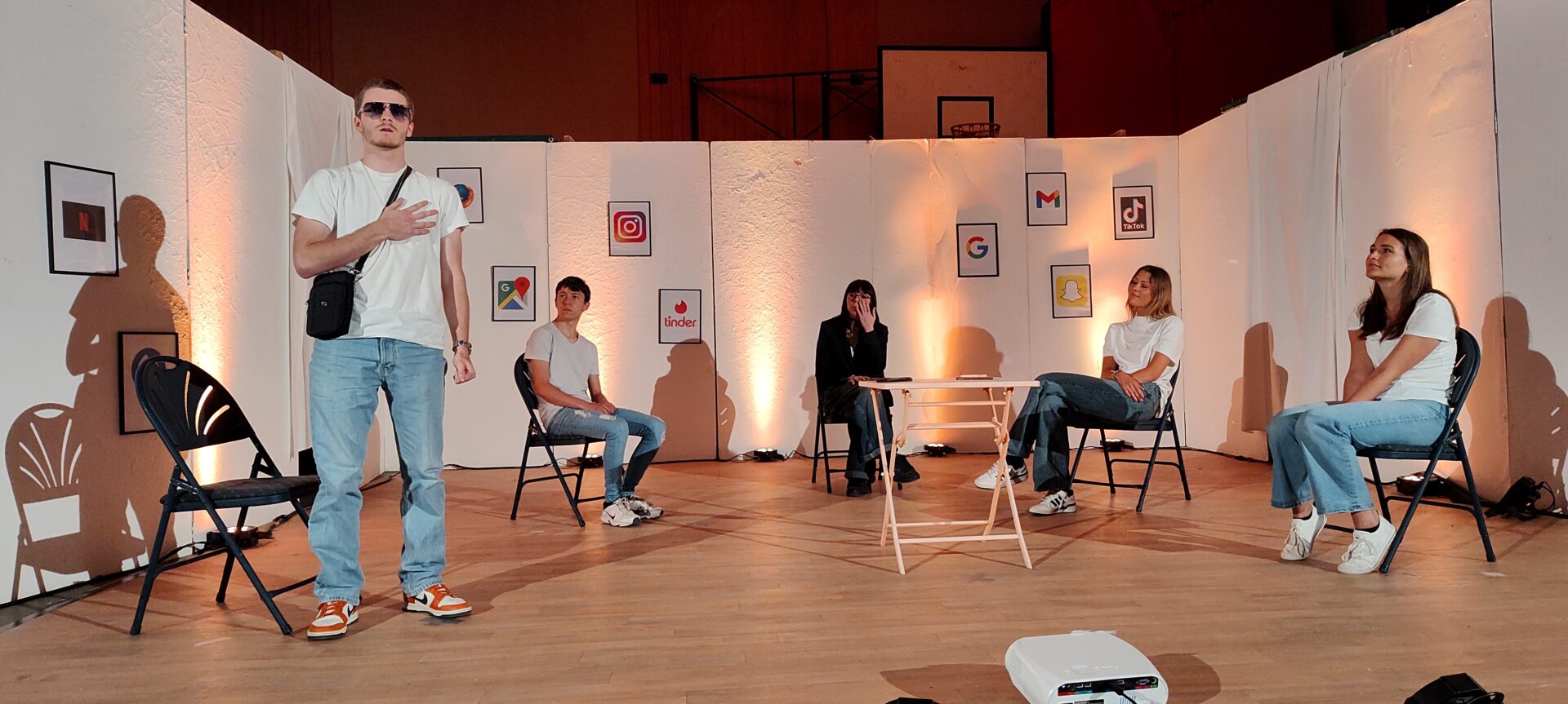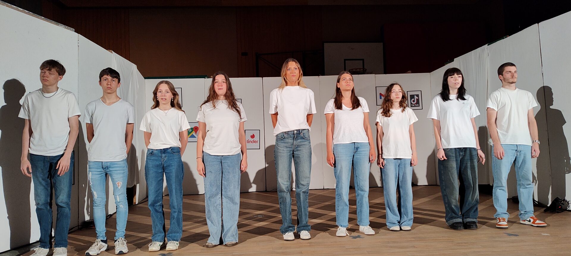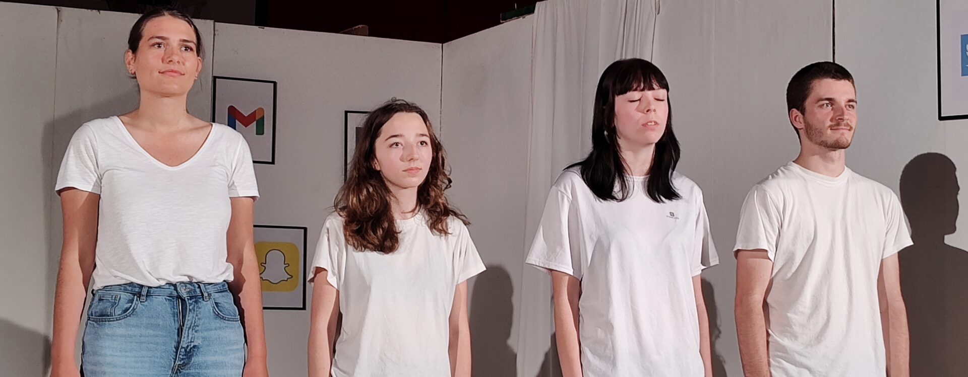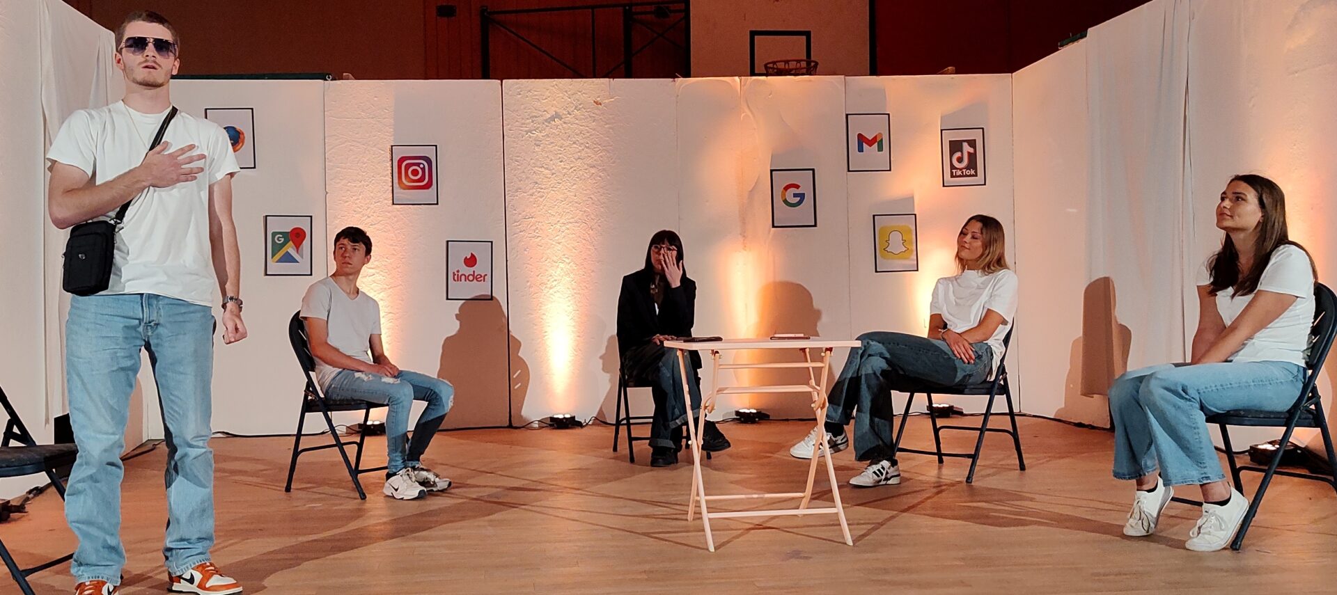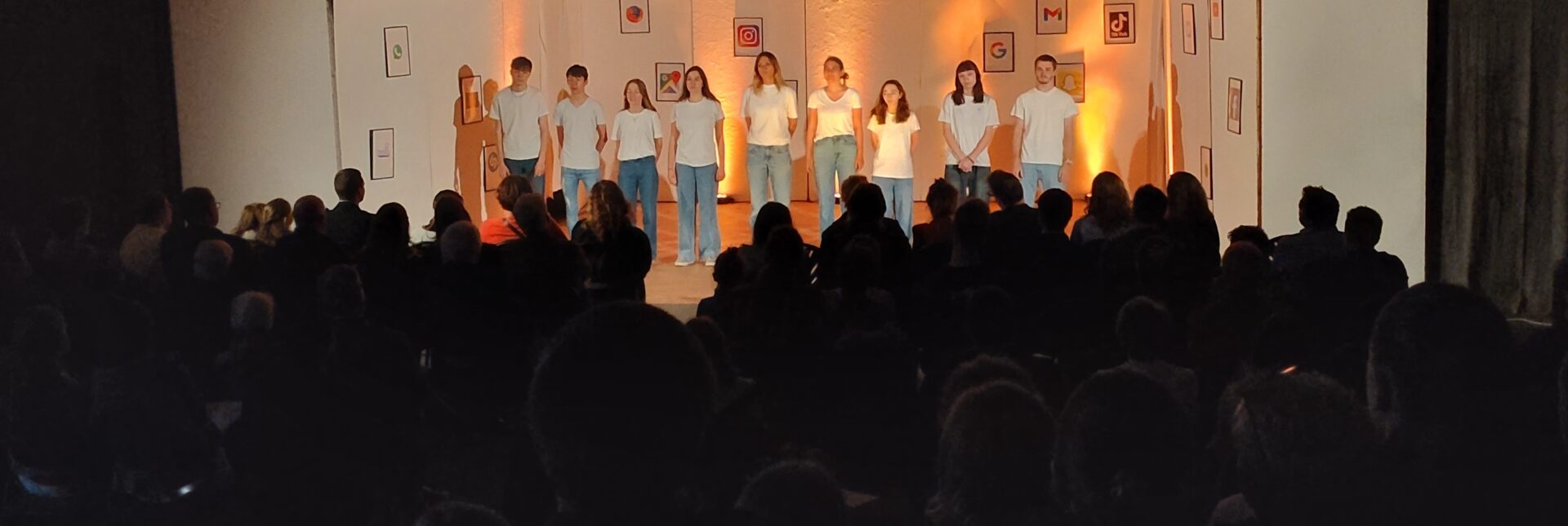 “E-Génération” aborde avec une pertinence saisissante la réalité de la génération Z, cette génération née dans les années 90 et profondément immergée dans le monde numérique. La pièce explore comment les téléphones et ordinateurs sont devenus des extensions de nos corps et de nos cerveaux, transformant notre rapport au monde et redéfinissant les codes du vivre ensemble. À travers des dialogues percutants et des scènes poignantes, les rhétoriciens ont brillamment illustré les défis et les opportunités de cette génération connectée.