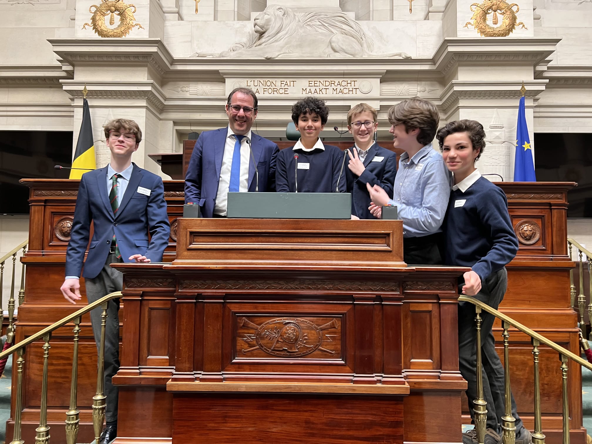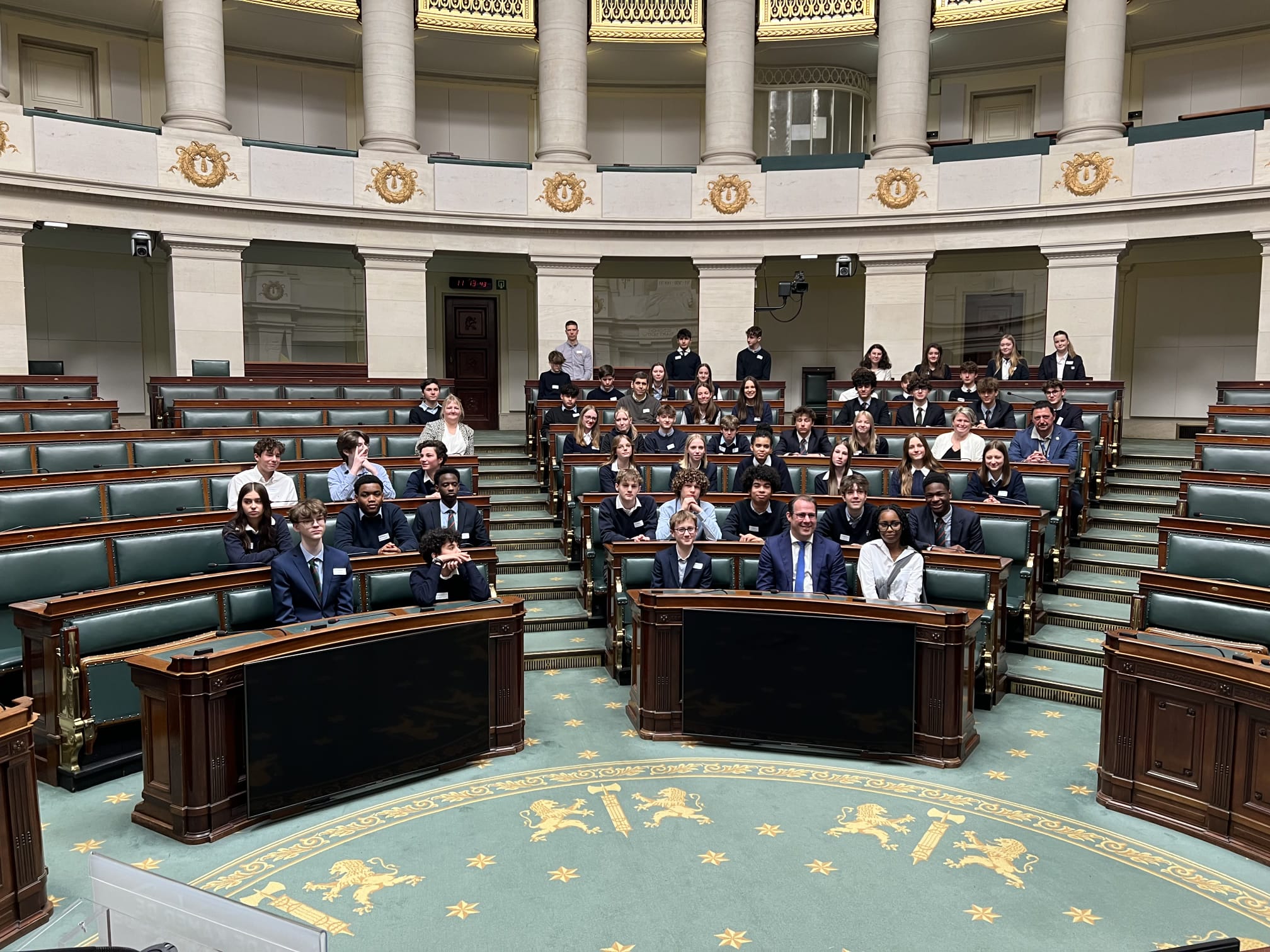 Les classes de 3ème année du Collège de Maredsous en visite au parlement fédéral, temple de notre démocratie.