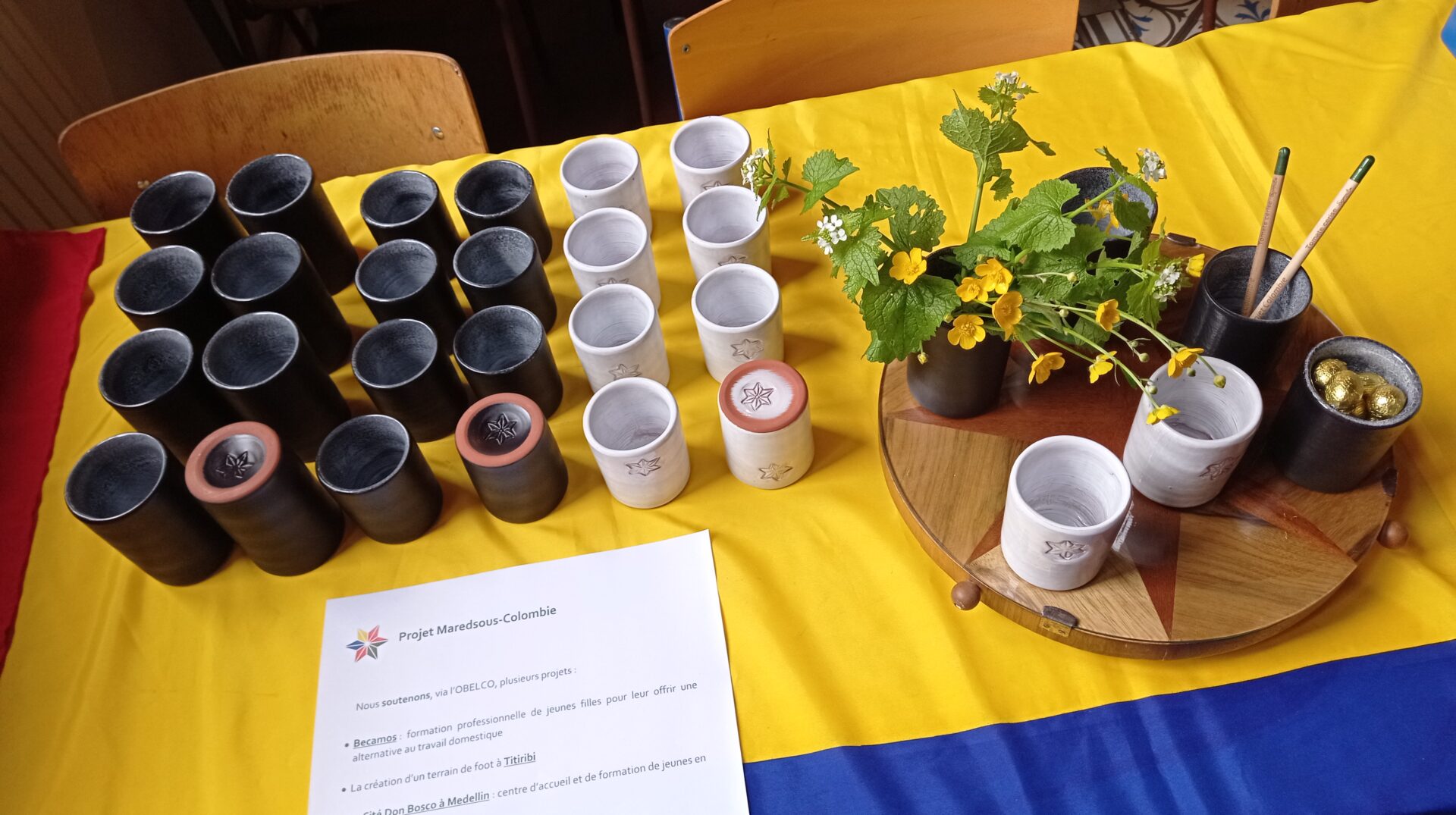 Vendredi, lors de la réunion des parents, nous avons vendu des tasses au profit du Projet Maredsous-Colombie.